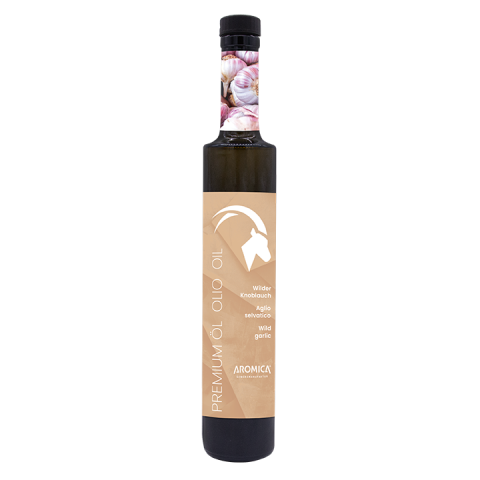 Olio extravergine di oliva con aglio selvatico. Finissimo olio di oliva messo in infusione con aglio selvatico italiano, per un versatile utilizzo in cucina.